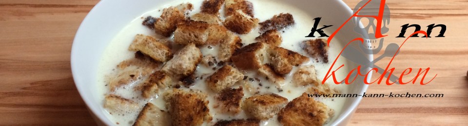 Und genau so bereiten wir unsere Knoblauchcremesuppe heute zu, mit Brot Croutons als Suppeneinlage.